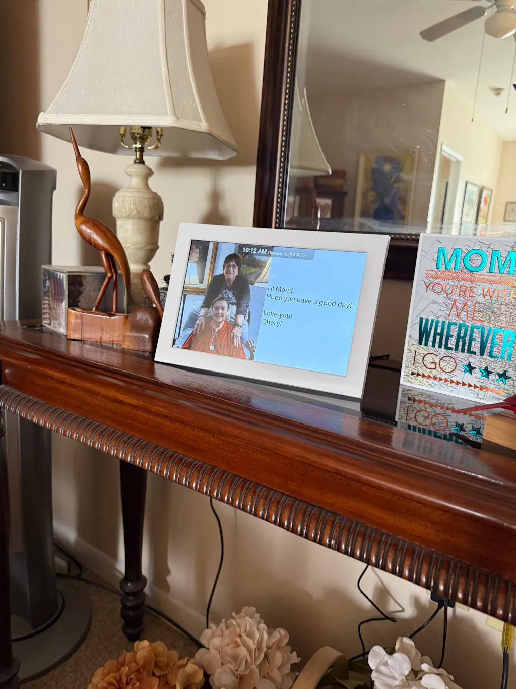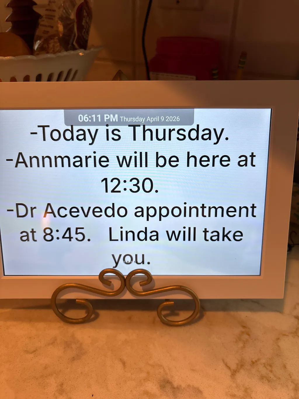 It helps caregivers provide gentle reminders, daily structure, and reassuring messages throughout the day.